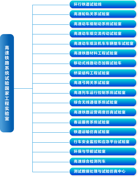 By relying on the test loops and commercial lines, the laboratory focuses on HSR performance including reliability, safety, riding comfort, energy conservation and environmental protection and is mainly engaged in comprehensive commissioning, inspection & test, and authentication &certification for high-speed train, track, communication & signaling, traction power supply, passenger transport service, safety, energy conservation and environmental protection, providing technical support for the establishment of Chinese HSR technical standard systems.