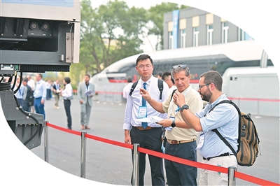 7月9日,第十二屆世界高鐵大會“高鐵創新之旅”活動現場,參會代表在室外實車展示區進行觀摩。王 瑋攝(人民圖片)