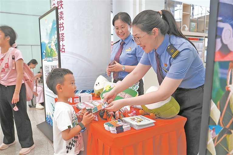 在南寧東站,旅客打卡鐵路風景拍照區。在柳州站,氣球被扎成花朵和粽子造型,引來旅客駐足拍照。在桂林北站、東安東站、全州南站的知識問答現場,工作人員圍繞端午節及鐵路安全、乘車常識等內容設置問題,旅客回答正確就能獲得一份精美禮品。